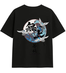 Mavinin dalgalarıyla dans eden zarif turna kuşları. Barış, özgürlük ve sonsuz yolculuğun ruhunu taşıyan şık bir tasarım.