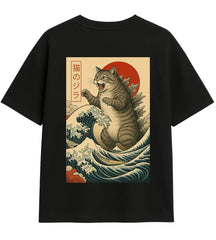 Japonya’nın ikonik Godzilla figürü, sevimli ama kudretli bir kedi formunda yeniden doğuyor. Dalgalara karşı kükreyen NekoZilla t-shirt!