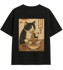 Japon mutfağına selam çakan bu sevimli tasarımda, ramenin tadını çıkaran kedi hem nostalji hem eğlence vadediyor.