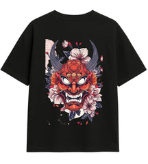 Sakura çiçekleriyle bezenmiş bu kırmızı Oni maskesi, Japon kültürünün en zarif sembolleriyle harmanlanmıştır. Hem vahşi hem estetik.