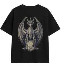 Taş dokulu, sert bakışlı ejderha. Karanlık ve gizemli havasıyla sokak stiline mitolojik bir dokunuş katıyor.