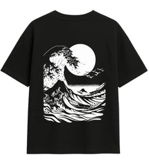Ay ışığında yükselen dev dalga, özgürlüğün ve doğanın gücünün sembolü. Hem sanatsal hem asi bir hava katıyor.
