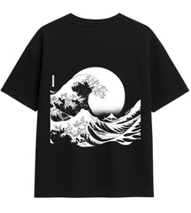 Efsanevi “Kanagawa Dalgası”ndan esinlenen bu tasarım, siyah-beyaz kontrastıyla dramatik bir görünüm kazandırıyor. Japon klasik sanatını modern sokak stiline taşı.