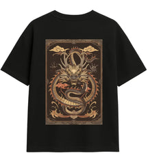 Altın detaylarıyla güç ve ihtişamı simgeleyen ejderha tasarımı, mitolojik bir ruhu sokak modasına yansıtıyor.