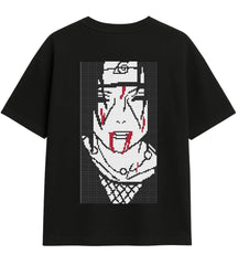 Naruto evreninin en unutulmaz karakterlerinden Itachi Uchiha, bu özel t-shirt'te pixel art tarzıyla hayat buluyor. Siyah-beyaz kontrastı ve kırmızı detaylarıyla dramatik bir etki yaratırken, Itachi’nin karizmatik duruşu sokak stiline güçlü bir dokunuş katıyor. Anime tutkunları için koleksiyonluk bir parça.
