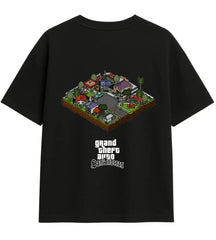 GTA: San Andreas evreni, pikselleştirilmiş mahalle görünümüyle t-shirt'e taşınıyor. Oyun kültürünü modayla birleştirmek isteyenlere özel.