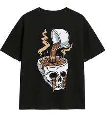 Skull Brew t-shirt, kahve tutkunlarının karanlık mizahını stilinle buluşturuyor. Kafatası kupaya dökülen kahve tasarımı, enerjini asla kaybetmemen gerektiğini simgeliyor. Gününü kahveyle başlatan, geceni kahveyle bitirenler için özel olarak tasarlandı.