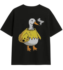 Sarı kazaklı, sigara içen mizahi ördek karakteri, eğlenceli ve sıra dışı bir sokak tarzı sunuyor. Espri dolu özgün bir tasarım.